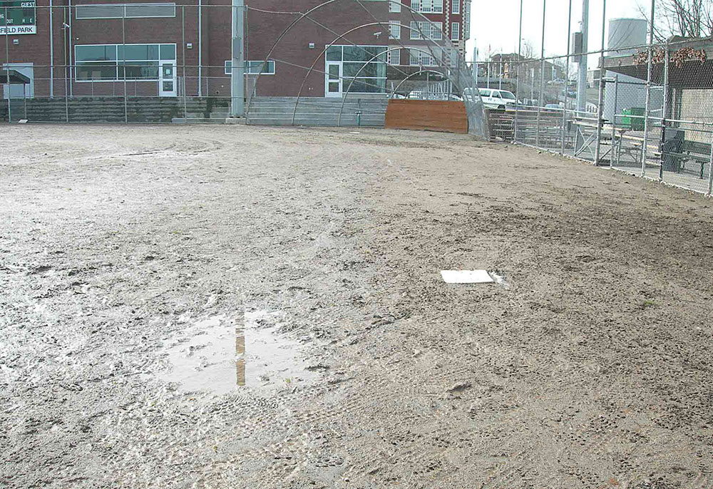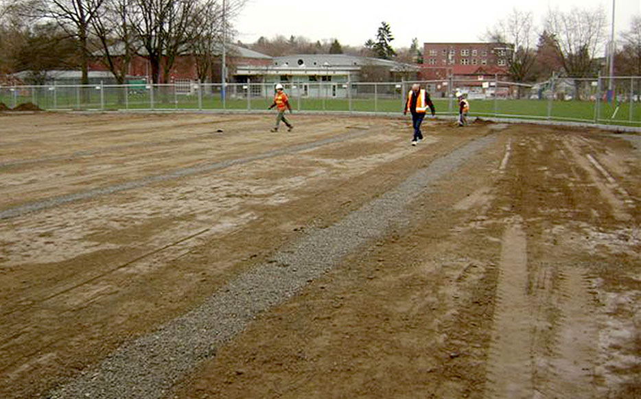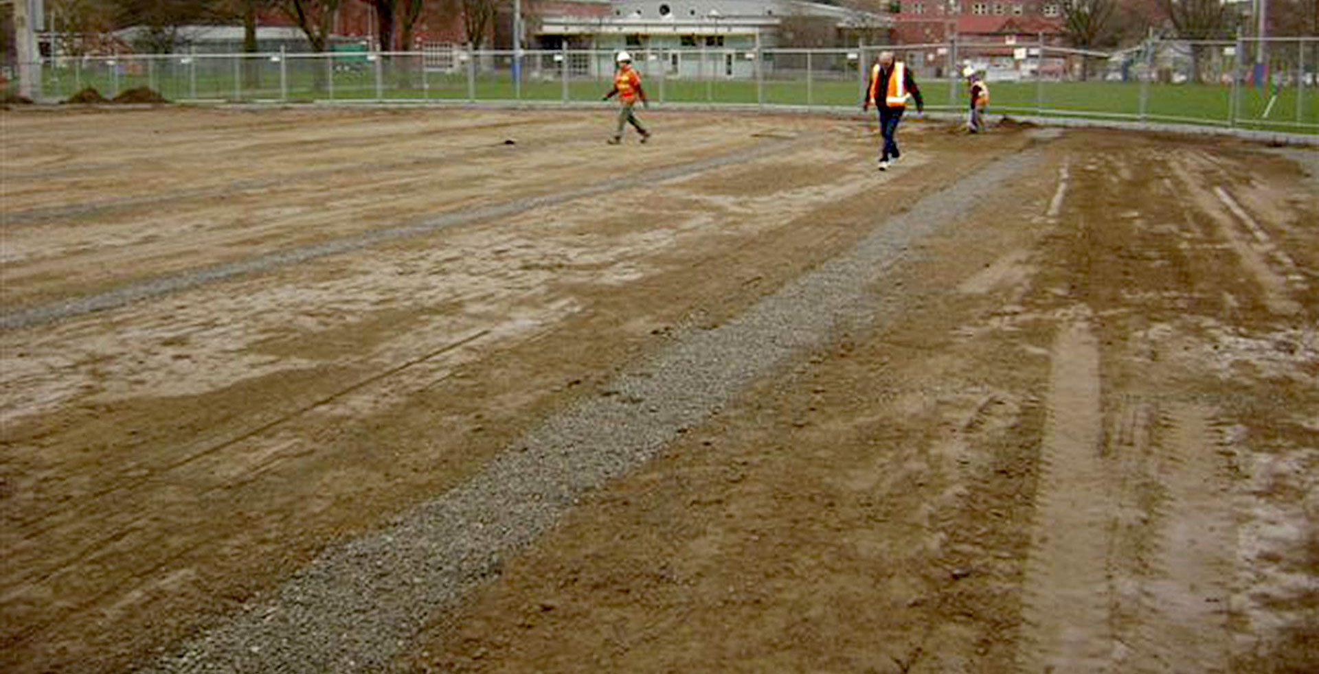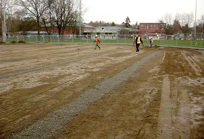 Drainage trenches are dug, lined with perforated pipe and filled with gravel.