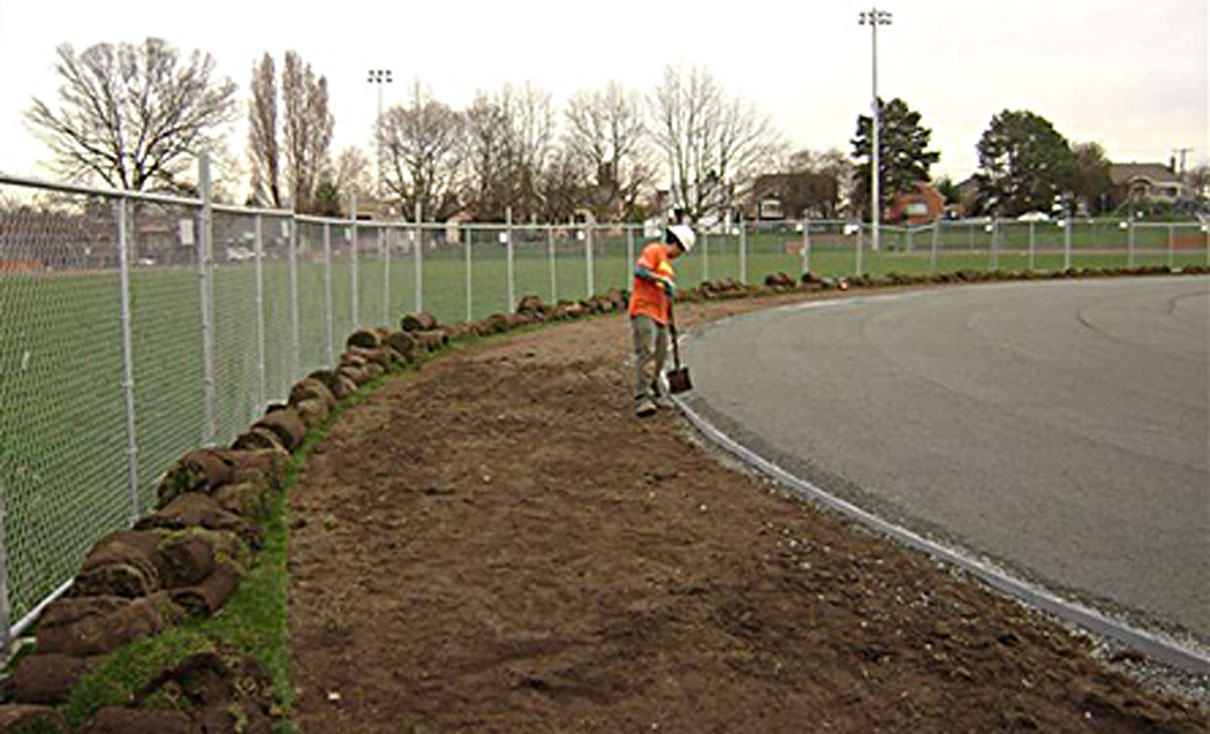 The synthetic turf will be attached to a concrete curb that will also separate the sod from turf.