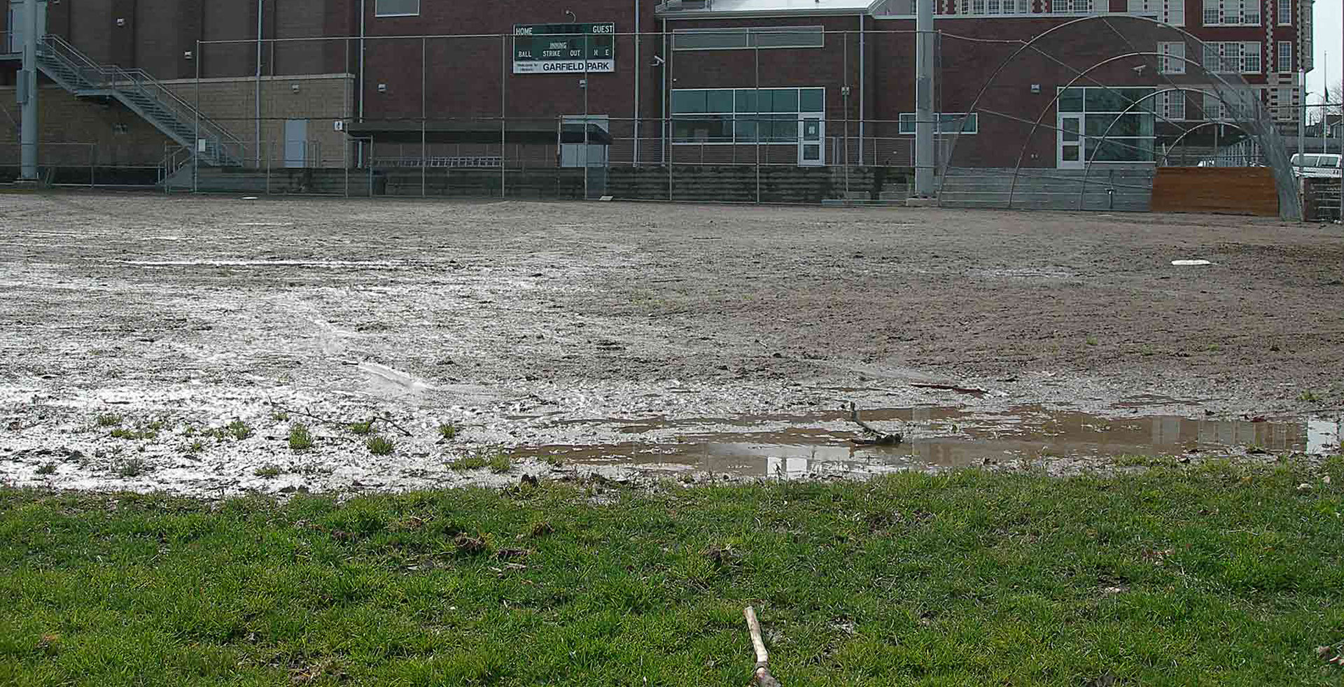 Drainage trenches are dug, lined with perforated pipe and filled with gravel.
